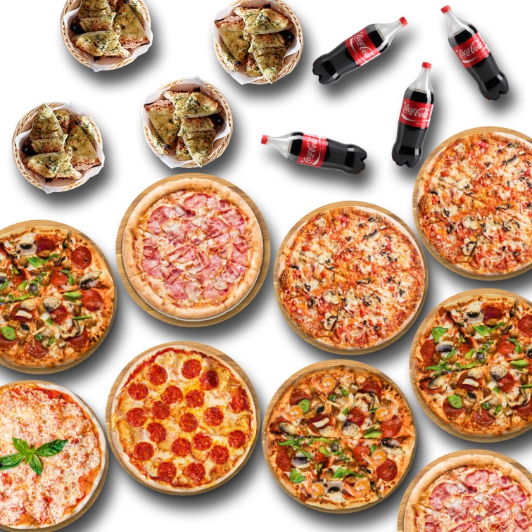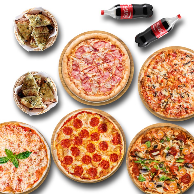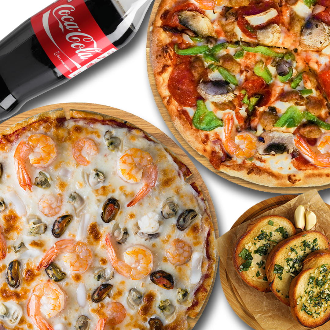 Tomato sugo, mozzarella, ham, hot salami, shrimps, mushrooms & capsicum