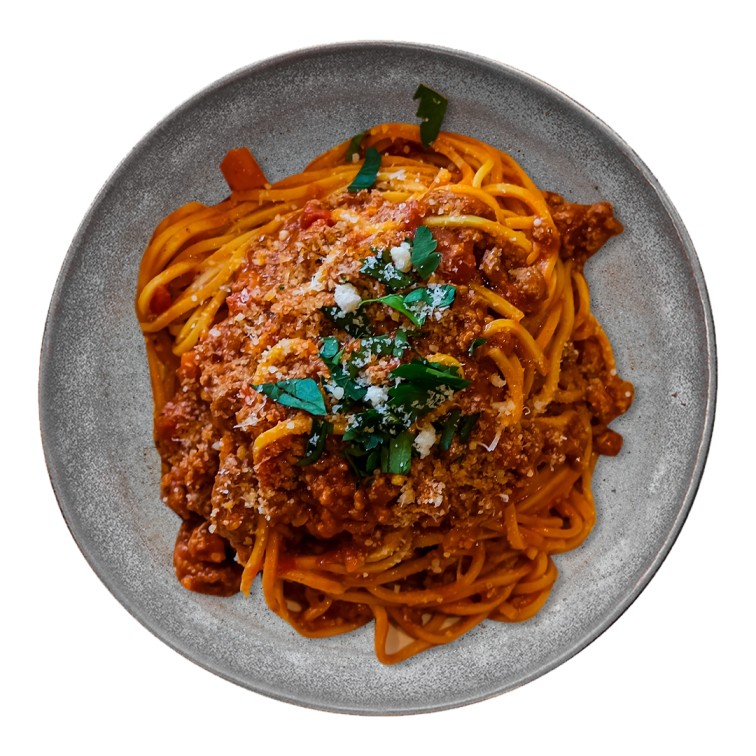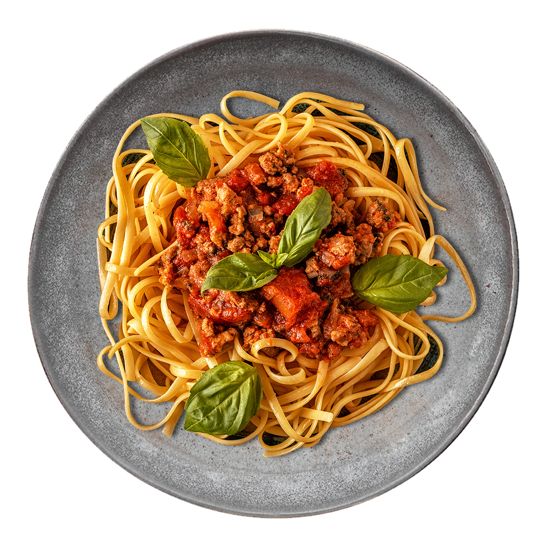 Tomato sugo, mozzarella, onions, bacon & mushrooms